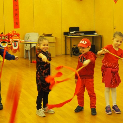On Tuesday, we celebrated the year of the Rooster. We learned all about the importance of the lion and dragon head in Chinese New Year celebrations, too. Esther, our school cook, made us a special Chinese lunch to celebrate.